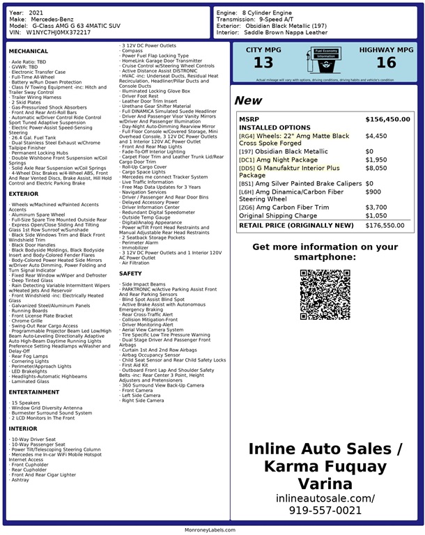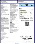 Inline Auto Sales / Karma attempts to provide accurate information on the inventory item listed above. The actual equipment may vary. Please confirm all vehicle options, accessories and prices with a sales associate to assure accuracy. This information is provided without representations or warranties of any kind, either expressed or implied. Prices do not include additional fees such as government fees and taxes, title and registration fees, finance charges, dealer document preparation fees, and emission testing