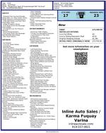 Inline Auto Sales / Karma attempts to provide accurate information on the inventory item listed above. The actual equipment may vary. Please confirm all vehicle options, accessories and prices with a sales associate to assure accuracy. This information is provided without representations or warranties of any kind, either expressed or implied. Prices do not include additional fees such as government fees and taxes, title and registration fees, finance charges, dealer document preparation fees, and emission testing