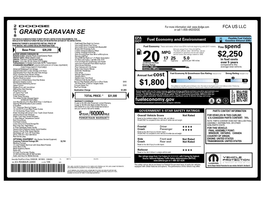 4 NEW TIRES, FOLD IN FLOOR SEATING, BLACKTOP PACKAGE, PARKVIEW, PREFERRED PACKAGE